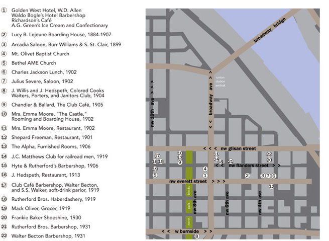 In 1900, the US Census said there were 1105 African-Americans living in the state of Oregon. Most were in Portland, and most of those lived in an area on the west side between SW Montgomery and NW Kearney, bounded by the Willamette River and 12th Avenue. The North Burnside District, as it was known, was one of the most diverse neighborhoods in Portland.